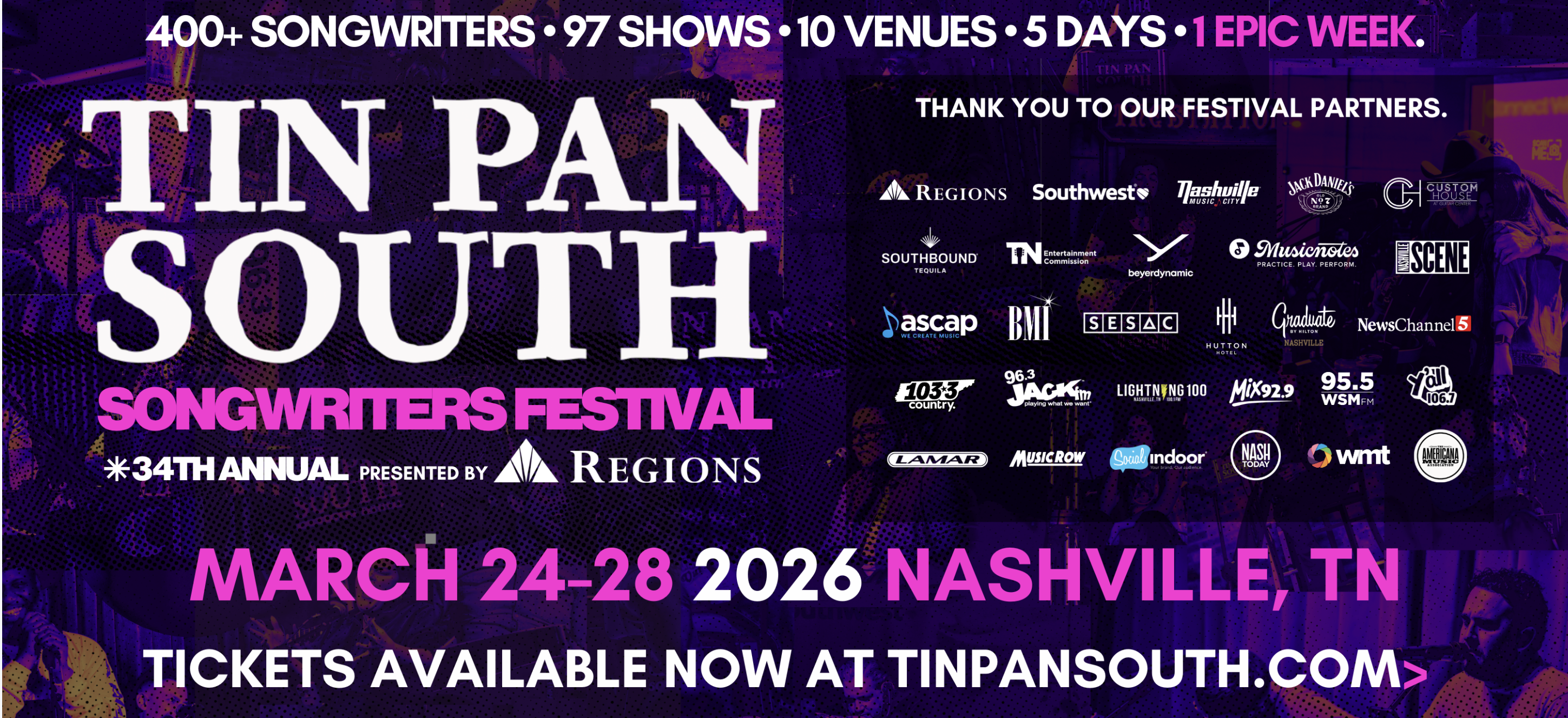 Nashville, TN – (February 26, 2026) – The 实时体彩极速赛车168官网 实时追踪168赛车一分钟60秒结果记录号码走势 精准预测今日最新赛车赛果 Nashville Songwriters Association International (NSAI), alongside presenting partner Regions Bank, is excited to share the eagerly awaited line-up and schedule for the 34th annual Tin Pan South Songwriters Festival! Ticket...