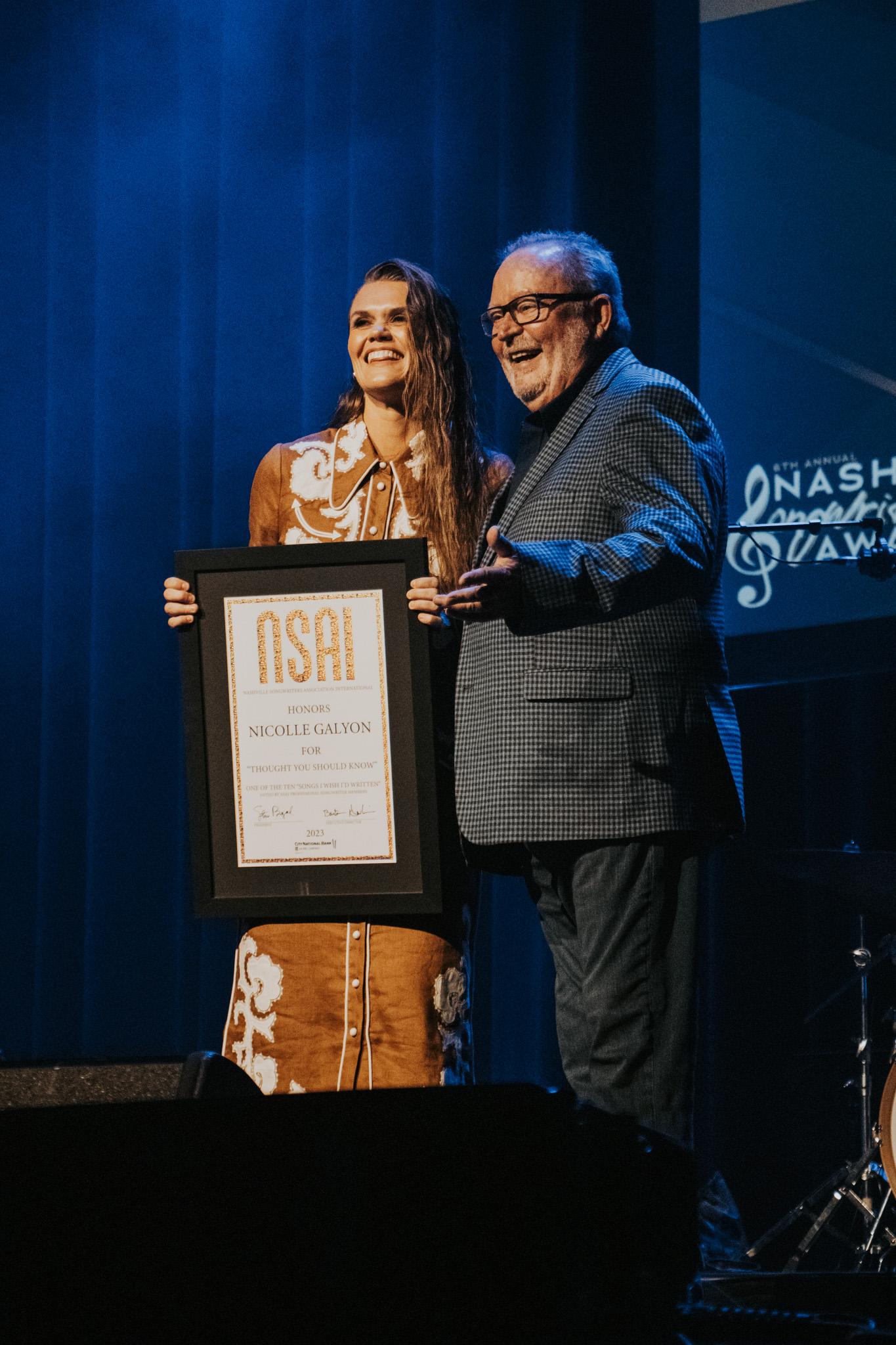 On Tuesday, September 26, Ryman Auditorium was overflowing with support for the songwriters who bring to life the music we all love, as NSAI and presenting partner City National Bank held the 6th annual Nashville Songwriter Awards. A night the industry and fans alike eagerly await each year, the latest ceremony did not disappoint, hosting dozens of performers throughout the evening to celebrate each award and honoree. The show opened with a striking medley performance featuring Jimmy Yeary and Sonya Isaacs, who performed “Golden Ring”, “The Jet Set”, and “D-I-V-O-R-C-E”, paying tribute to Bobby Braddock, who would later be honored with the 2023 Kris Kristofferson Lifetime Achievement Award.