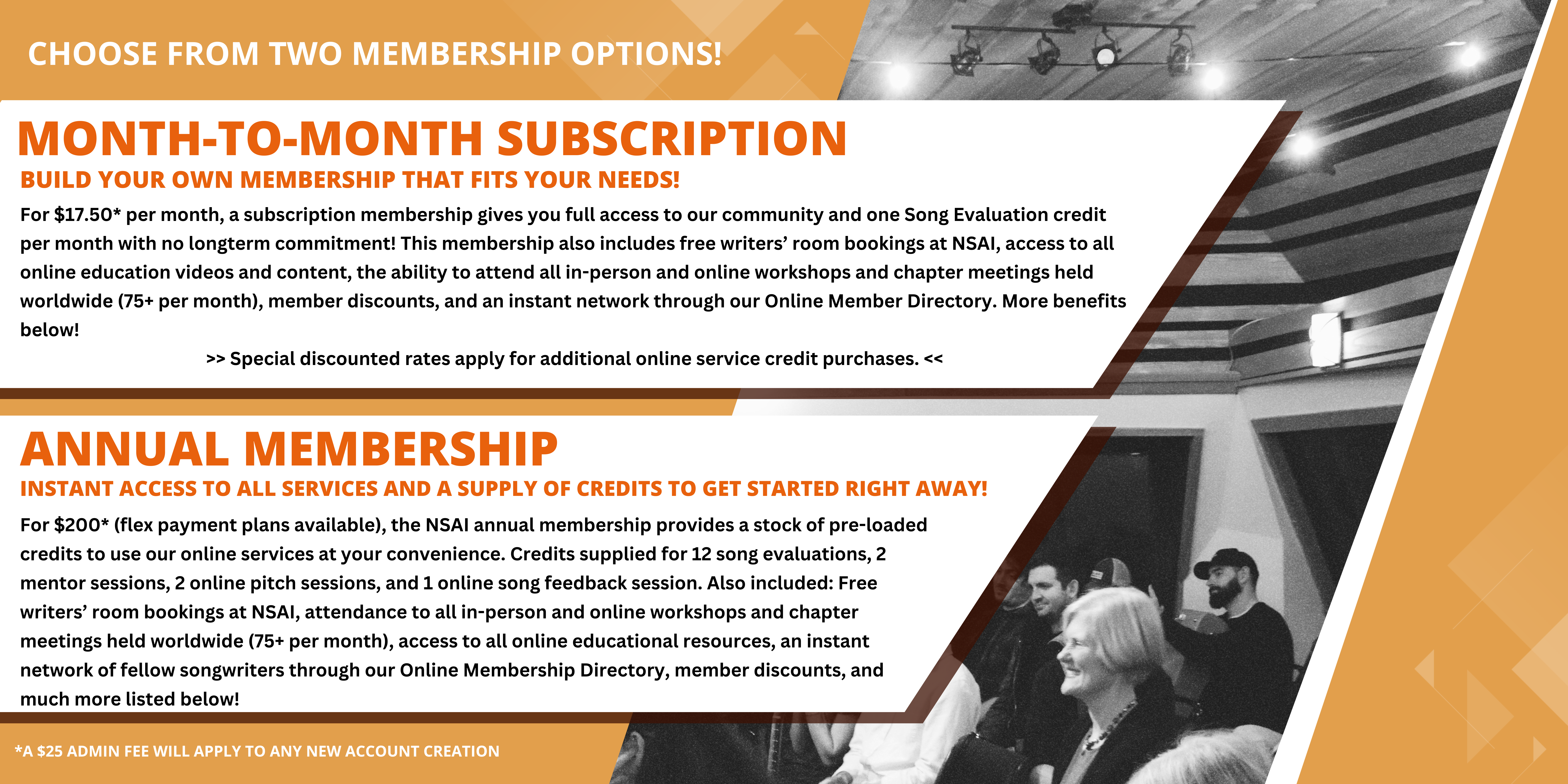 This is a year-long membership inclusive of all NSAI member benefits! You can either pay for the 12-month membership in full or opt to split into 2-3 consecutive installments.